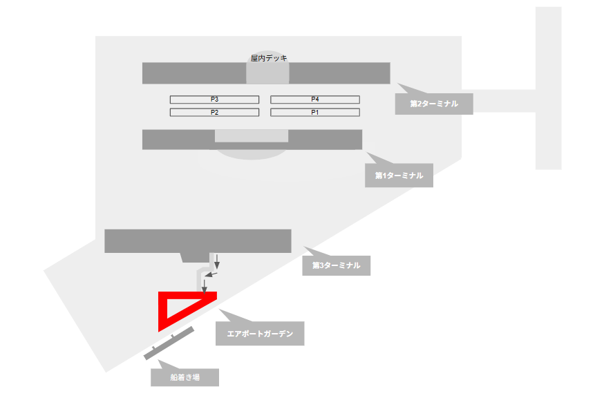 第1ターミナル、第2ターミナルから「エアポートガーデン」への徒歩移動はちょっと難しいかと思います。