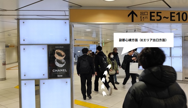 新宿方面改札に向かってしまうと、ちょっと移動距離が、、