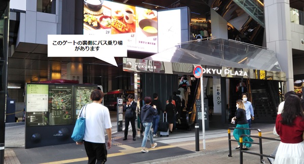 羽田空港から移動してくると、到着場所は、渋谷駅前の商業施設の「渋谷フクラス」前か、商業施設「マークシティ」の5Fです。