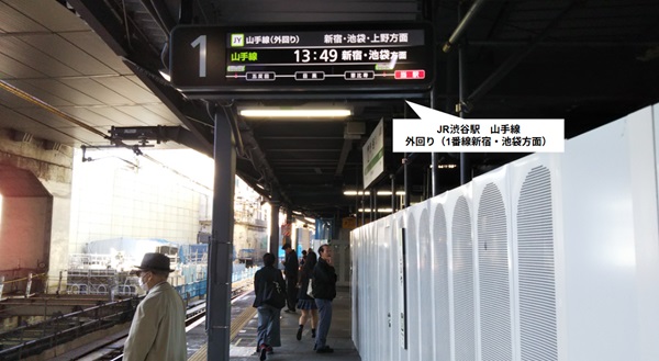 山手線外回り3番線から品川・渋谷行きの電車に乗車。