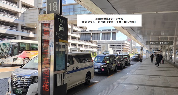 第1ターミナルから横浜駅に向かうにタクシー乗り場は 1.2.17.18「」番のりばです。