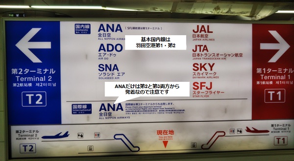 ●ターミナル1と2はそれぞれホームの反対側にあるので注意が必要です。