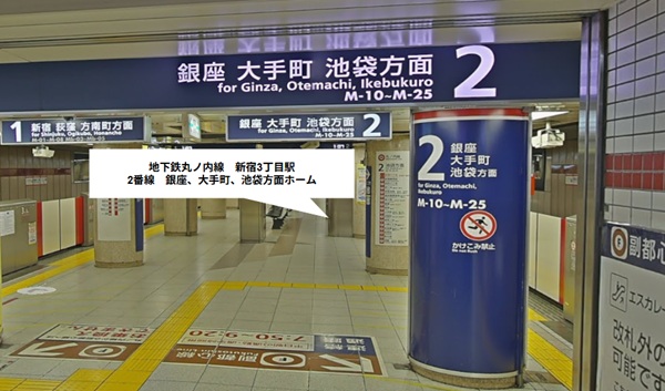 丸ノ内線、2番ホームから新宿3丁目駅へ