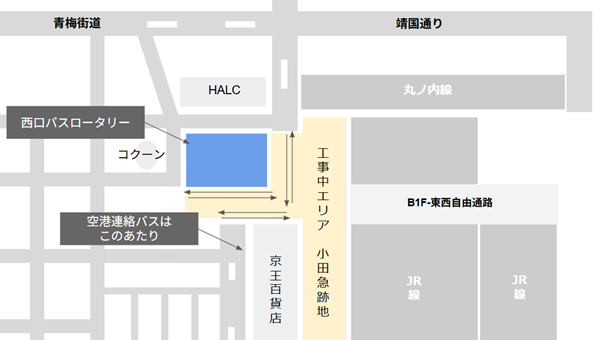 新宿駅西口(京王百貨店前)まで行くたまに、バスタ新宿も経路にあり