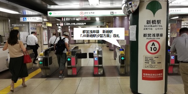 銀座線なら「JR新橋駅方面」改札を出て出口6から移動して少し歩くことになります。