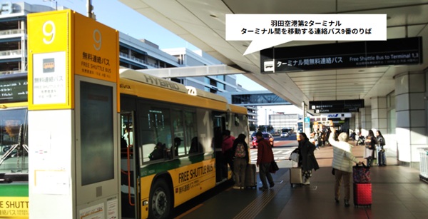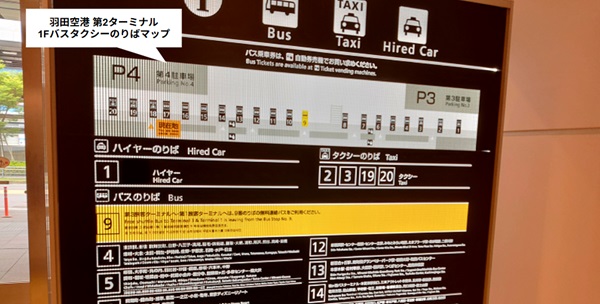 第2ターミナルの無料バス乗り場は「9」番乗り場です。