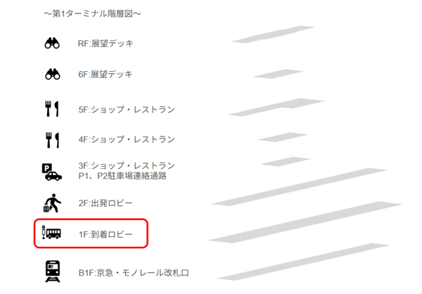 第1から第2へ移動するのは、国内線に乗り継ぐケースです。移動経路は以下の3つ(連絡通路・モノレール・バス)。