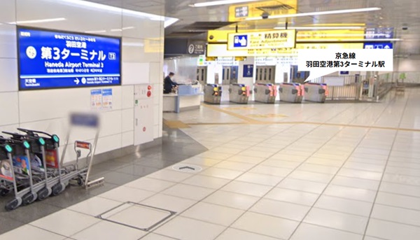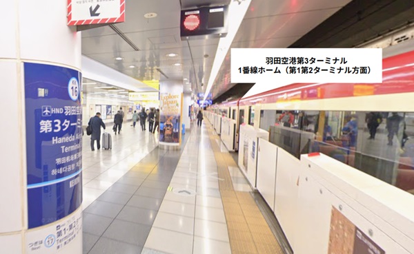 京急線の「羽田空港第1第2ターミナル駅」から「羽田空港第3ターミナル駅」まで電車で移動します。