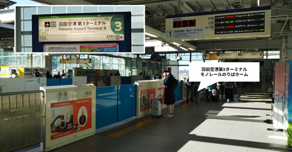 東京モノレールの駅は、京急線と異なり、第1ターミナル駅、第2ターミナル駅、第3ターミナル駅とそれぞれ駅があります。