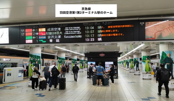 京急線は、第1ターミナルと第2ターミナルの中間ぐらいに「羽田空港第1第2ターミナル駅」が位置しているので、第1と第2間を徒歩で行き来することができてしまいます。